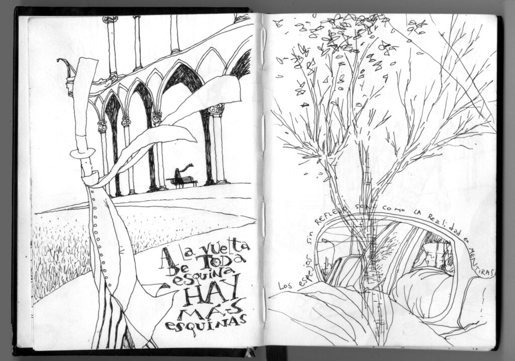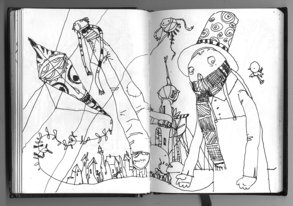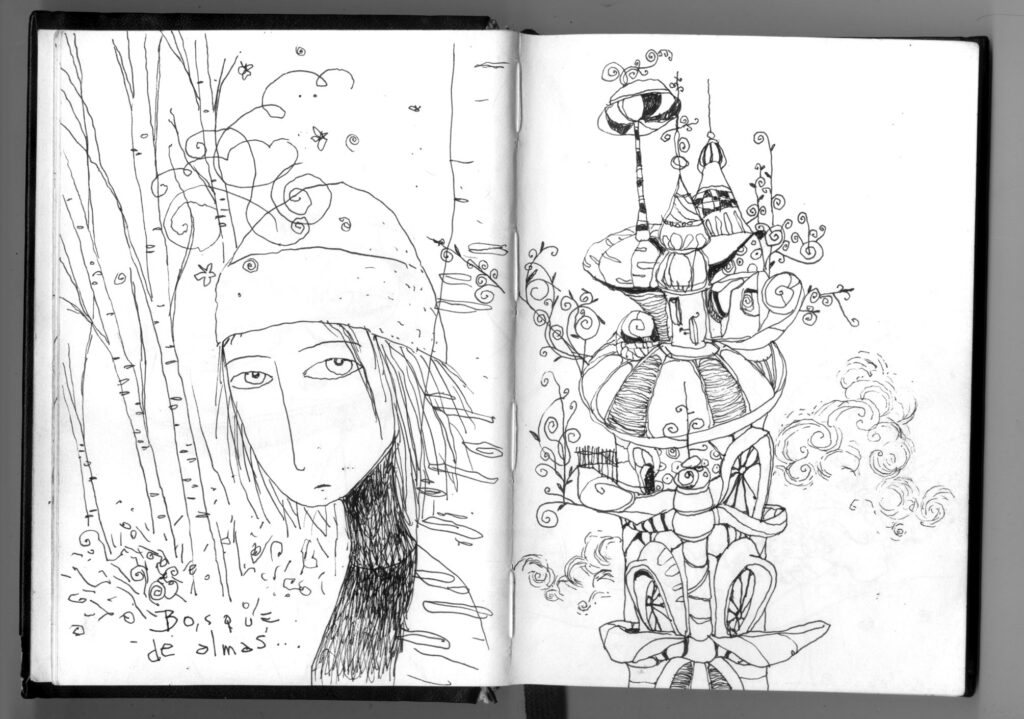 Estas imágenes son del cuaderno de dibujos de Poly, siempre lleva uno consigo y fue una gran fuente de inspiración para los cuentos que fue escribiendo Lucho. Algunos terminaron dentro del libro, pero otros seguirán esperando la oportunidad de cruzarse con nuevas historias, mientras tanto nos gusta compartirlas por aquí.
