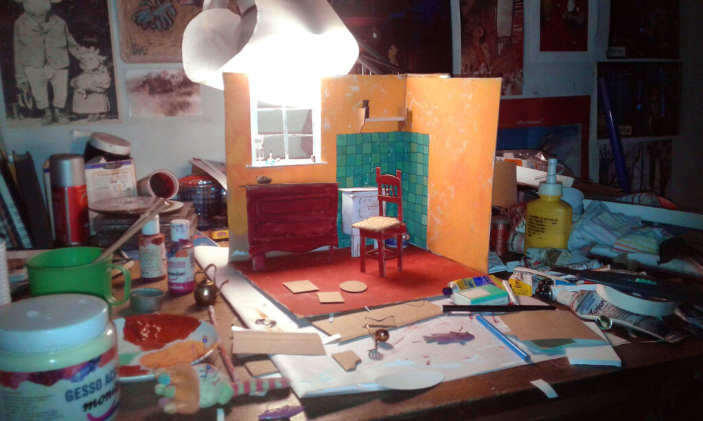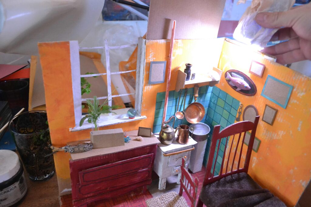 El libro tiene ilustraciones que fueron realizadas a lo largo de 10 años y en diferentes técnicas. Algunas de las historias fueron especialmente escritas por Lucho para que las ilustre Poly y la última que eligió hacer es “El regalo de mi abuelo”, le pareció una historia conmovedora, llena de nostalgia y todo un desafío ilustrar porque habla de un abuelo que podría ser de cualquiera de nosotros. Fue por esto que decidió no mostrar a un abuelo con sombrero, sino su universo representado en una escena, en este caso una maqueta. De esta forma, cada lector podrá no solo leer, también oler, escuchar y recordar las historias que les regalará el sombrero de su propio abuelo.