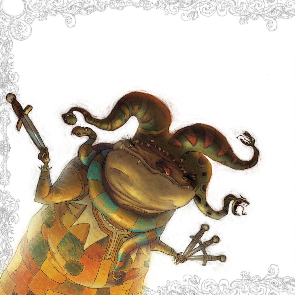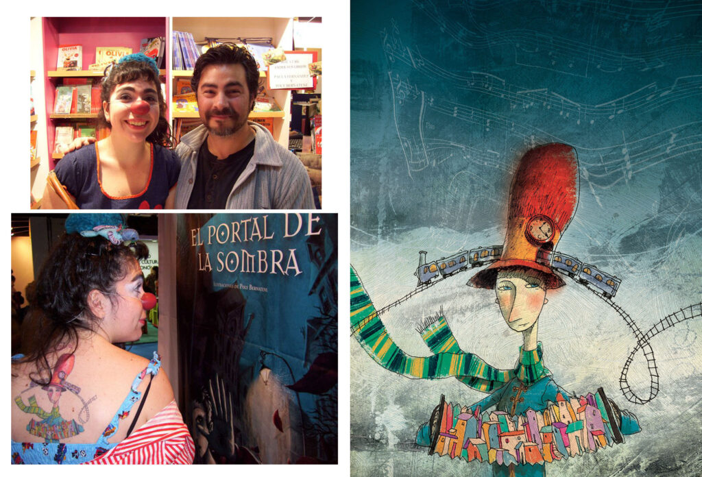 Yo había compartido esa ilustración en mis redes sociales hacía mucho tiempo, y recorriendo una Feria del libro me encontré con una payasa hermosa que cuenta cuentos y recorre el mundo. Sí, en selvas, en lugares donde no hay acceso para que los chicos y la gente disfruten de historias. Se lo había tatuado en toda la espalda.