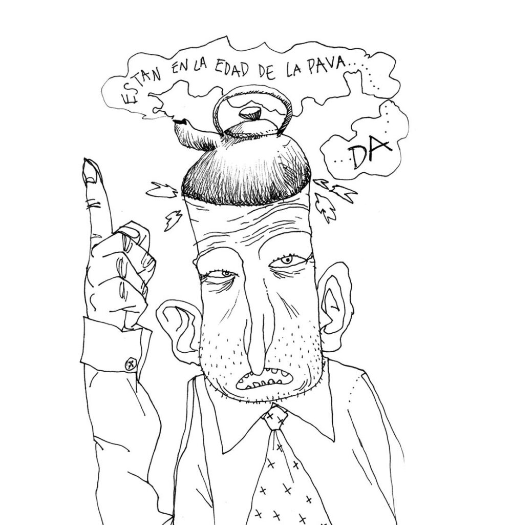 Lucho: Fue el último. Resulta que este dibujo no podía escribirle nada. Es un dibujo que tenía tanto que contaba, tanto que decía tanto que no podía, no le encontraba palabras. Y les juro, les juro que a la noche me daba vueltas. Tengo que escribir el sombrero del tren, tengo que escribir el sombrero del acordeón.